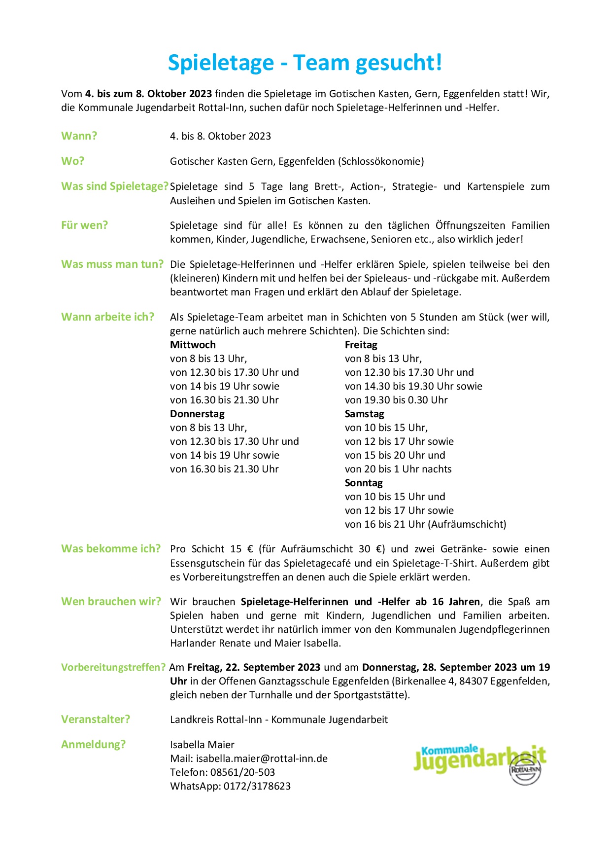 Nähere Informationen gibt es ab Mitte September in der Tagespresse, auf der Homepage unter koja.rottal-inn.de (ohne "www."!) und über Flyer an den Schulen.